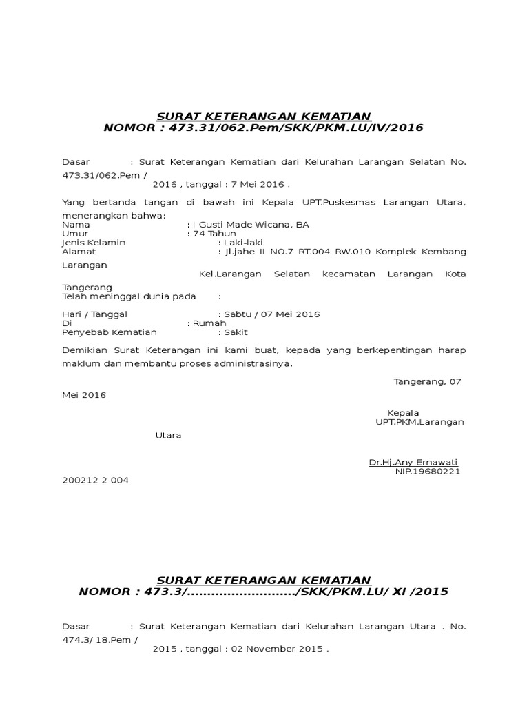 Ditulis oleh unknown 11:45 am. Dengan mencari langsung contohnya di google mungkin kita bisa mendapatkan format surat keterangan kematian yang kita butuhkan jika kita menggunakan kode di atas. Contoh surat keterangan kematian rating: Demikianlah penjelasan tentang contoh surat keterangan domisili semoga bisa materi kali. Rs karya medika jakarta jl.